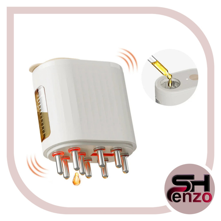 دستگاه روغنتراپی مینی براش، یک اپلیکاتور پیشرفته هست که دارای مخزن شش میلی لیتری برای افزودن انواع روغن ها و سرم های مو هست. این دستگاه دارای ماساژور های روغن و تیغه های فلزی اعمال کننده ماساژ ویبره ای با تحریک الکتریکی EMS هست همچنین منبع نور قرمز دارد. تمام این موارد کمک به افزایش گردش خون در اسکالپ و تغذیه بهتر و بیشتر فولیکول های مو می کند.